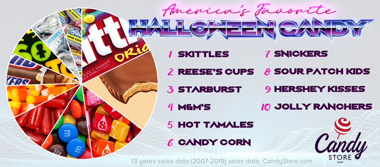 We have seen a lot of surprising favorites and least favorites over the years. That’s why working with unbiased data is so much fun. We looked at 13 years of sales data (2007-2019), looking in particular at the months leading up to Halloween. We sell nationwide (and to Canada) so we broke down our sales by state. We also have relationships with major candy manufacturers and distributors – all of whom contributed and helped us reach our conclusions.