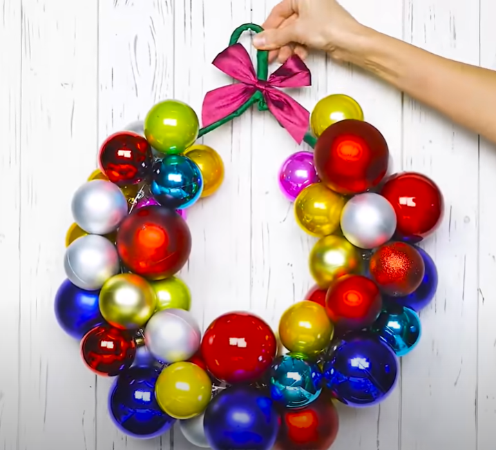 - Festive Wreath on a Budget: If you’re looking to brighten up your holiday décor without breaking the bank, try this DIY wreath hack. Take a wire hanger and carefully bend it out of shape, turning it into a circle and twisting the top of the hanger open. Next, place any color of plastic ornaments around the wire, varying in sizes to create a full-looking effect. Once complete, twist the top of the hanger back together and place a ribbon over the remaining exposed wire, adding a bow to the center. Now, you’ll have a cheap, easy DIY wreath that you can easily hang up!