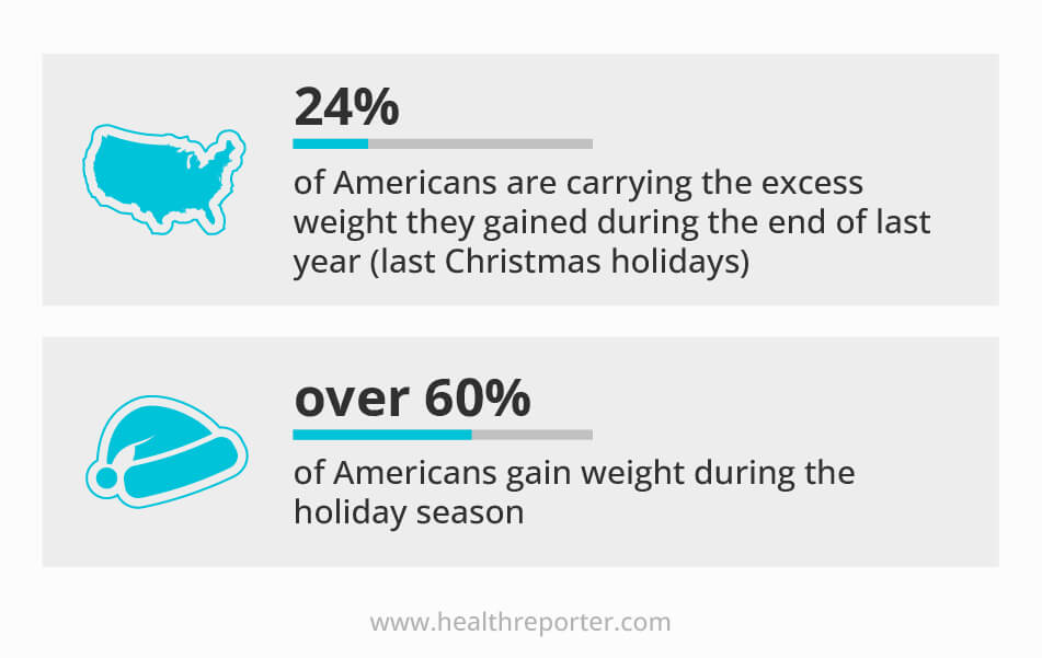 A recent survey found that 24% of Americans still carry the excess weight they gained at the end of last year. Additionally, over 60% of Americans gain weight during the holiday season.1