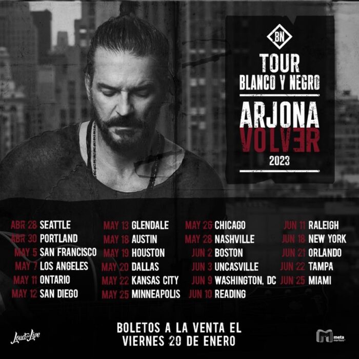 Loud And Live, la compañía de entretenimiento, mercadeo y medios con sede en el sur de la Florida, anuncia que BLANCO Y NEGRO, considerada una de las giras más exitosas del 2022 de la súper estrella de la canción Ricardo Arjona, se extiende a petición popular para el 2023 bajo el título BLANCO Y NEGRO: VOLVER.