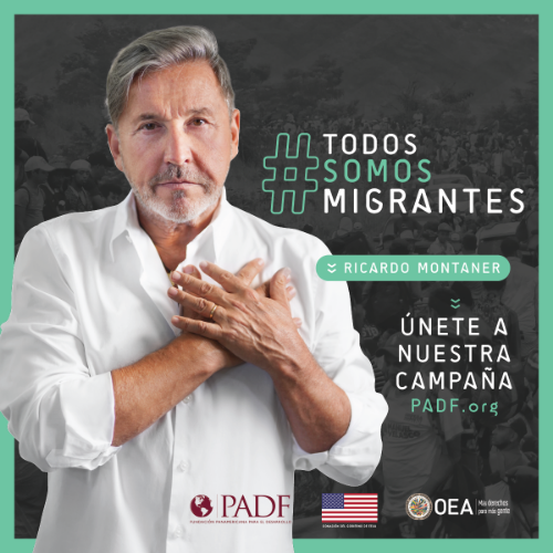 “Es un honor tener a Ricardo Montaner como embajador para los derechos de los migrantes y refugiados de PADF y de la OEA, por su compromiso y apoyo a las comunidades migrantes de nuestro continente”, dijo el Secretario General de la OEA, Luis Almagro. “Durante grandes movimientos migratorios, como los que estamos viviendo hoy en día, es cuando necesitamos más del apoyo de influyentes como Montaner, para ayudarnos a inspirar a personas en países receptores a brindar una mano amiga, y ayudar a integrar a migrantes y refugiados en sus nuevos países. El éxodo causado por la vulneración de los derechos humanos de los venezolanos no es un proceso fácil. Ante esta situación, todos tenemos la obligación moral de ayudar”, señaló el Secretario General Almagro. El objetivo de esta campaña denominada