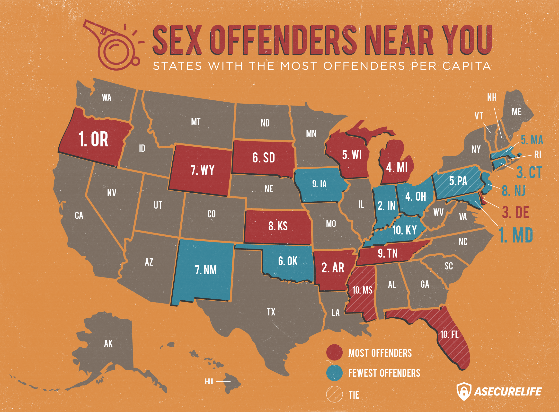 According to the latest survey of state sex offender registries, here are the states with the highest number of sex offenders per capita.