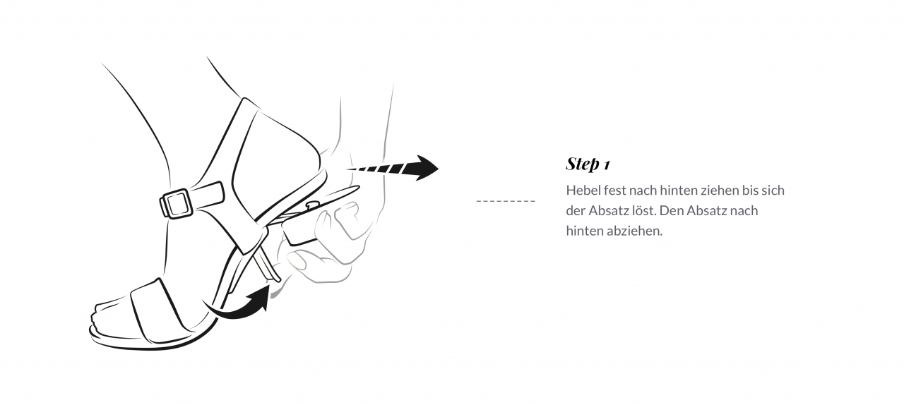 La compañía de Munich de reciente creación, Mime et Moi, ha desarrollado una tecnología patentada de palanca y planta del pie que permite un tacón intercambiable en el zapato de una mujer para que se convierta en diversas formas, tamaños, altura y color.