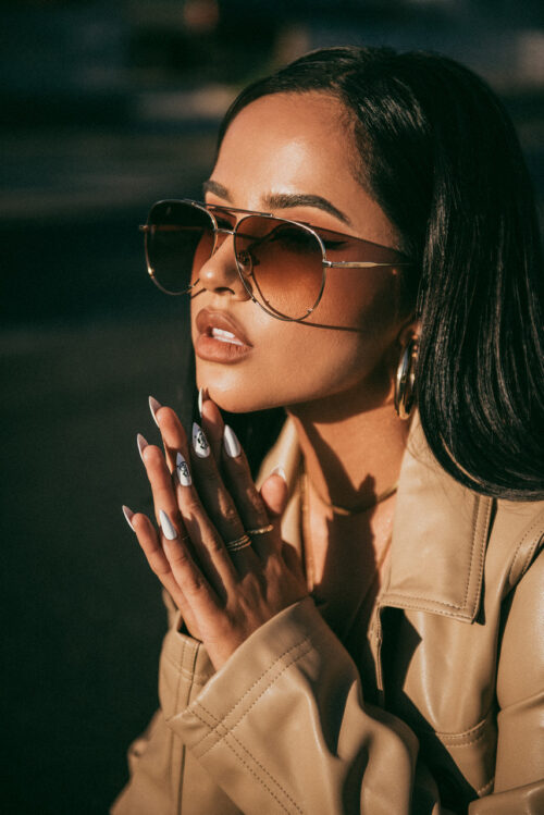 La colección Becky G x DIME es una mezcla de momentos en LA, inspirados en el glamour casual de la cultura latina en California. Becky G siempre visualizó una colección accesible para sus fans, tanto en términos de diseño como de precio. Las gafas oversized tienen toques especiales y siluetas dramáticas son una verdadera representación de Becky G y de lo que significa ser un DIME.