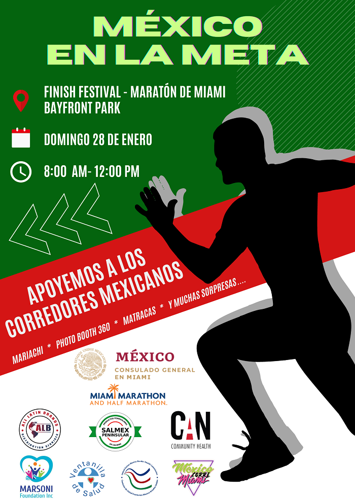 Con cientos de competidores mexicanos registrados, la edición número 22 del maratón se enriquecerá con el intercambio multicultural que mediante el deporte nos permite mostrar la pluralidad de México allende nuestras fronteras, tanto de nuestra gente así como las empresas mexicanas y aliados que son parte del desarrollo económico y comercial de Florida como SALMEX Peninsular, All Latin Brands Distribution Services, Ventanilla de Salud “Marsoni Foundation”, CAN Community Health, United States-Mexico Border Health Commission y Mexico Corre Miami.